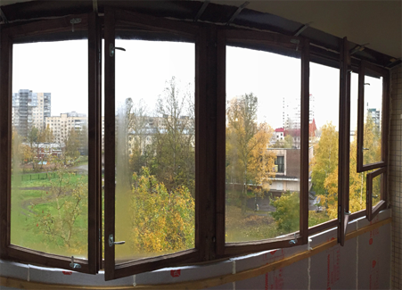 Застекление выполняется на основе деревянного рамного бруса. Остекление балкона деревом предполагает применение двух- , трех-, четырехстворчатых и более сложных окон в соответствии с параметрами лоджии (балкона).
